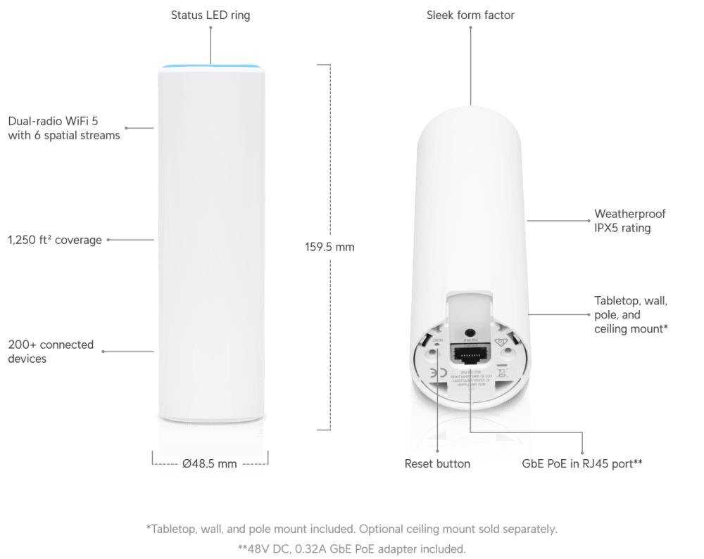 Type Wireless Access Point | Data transmission speed 1733 Mbps | Wireless Frequency Range 2.4 GHz /5 GHz | Wireless Transmit Power 26 dBm | Dimensions Ø 48.50 x 159.49 mm