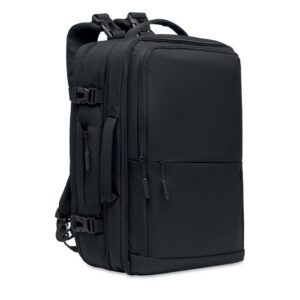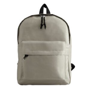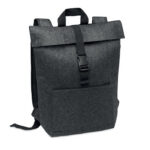 RPET felt backpack with cotton strap closure and zippered pocket on the front. It has a laptop compartment.