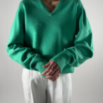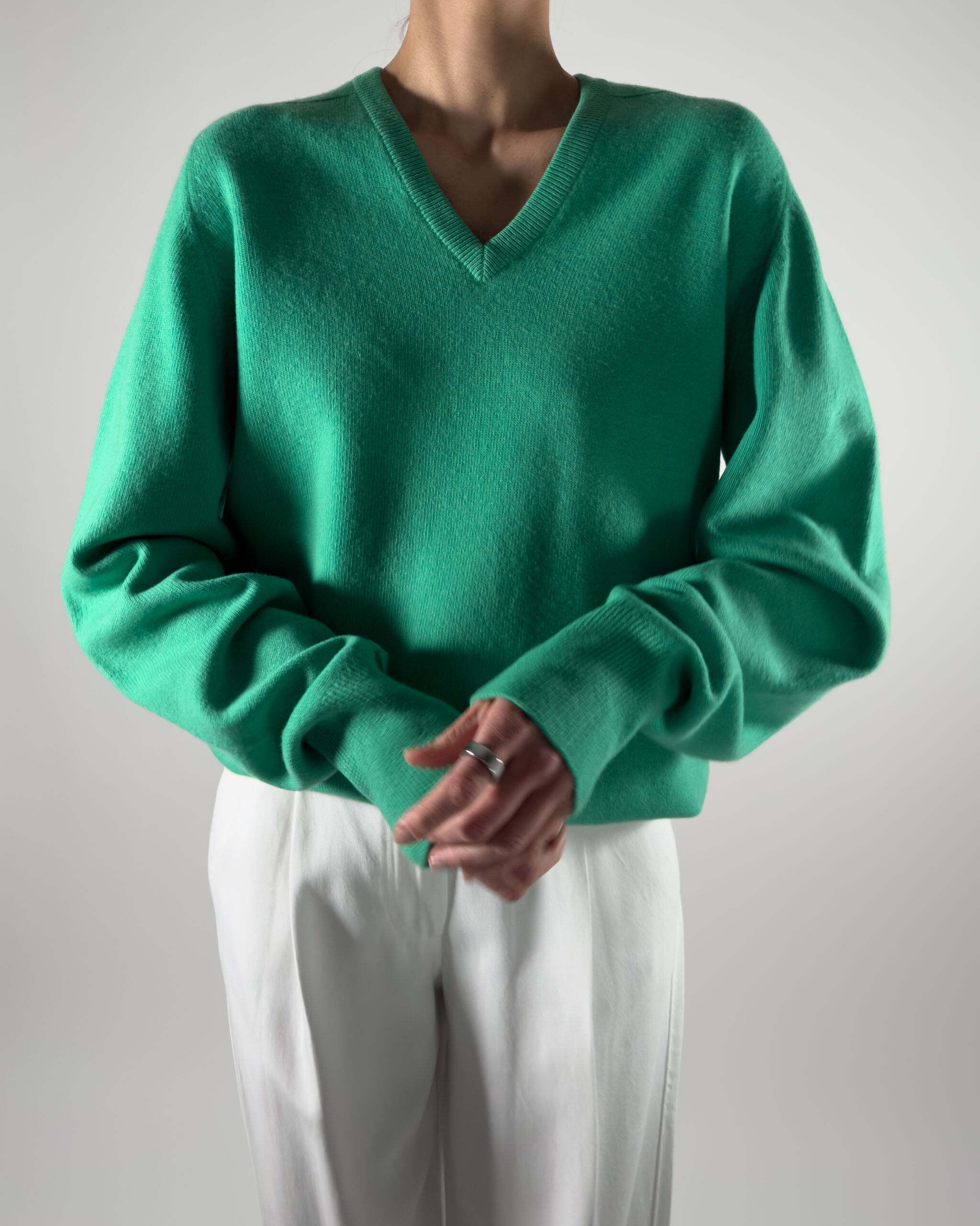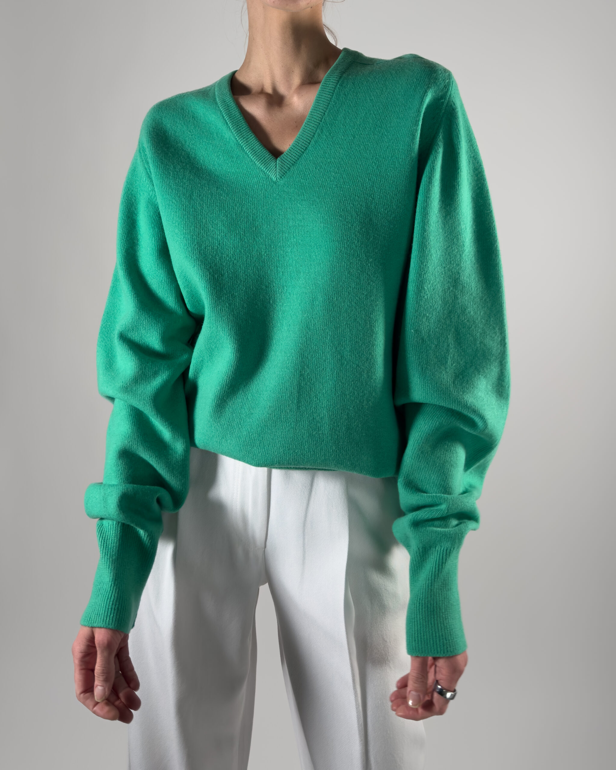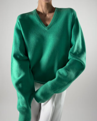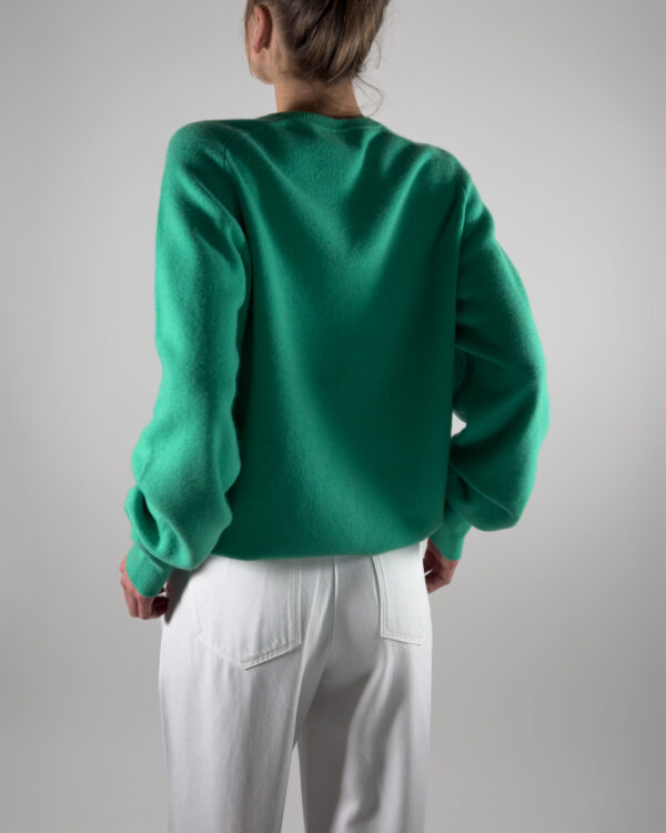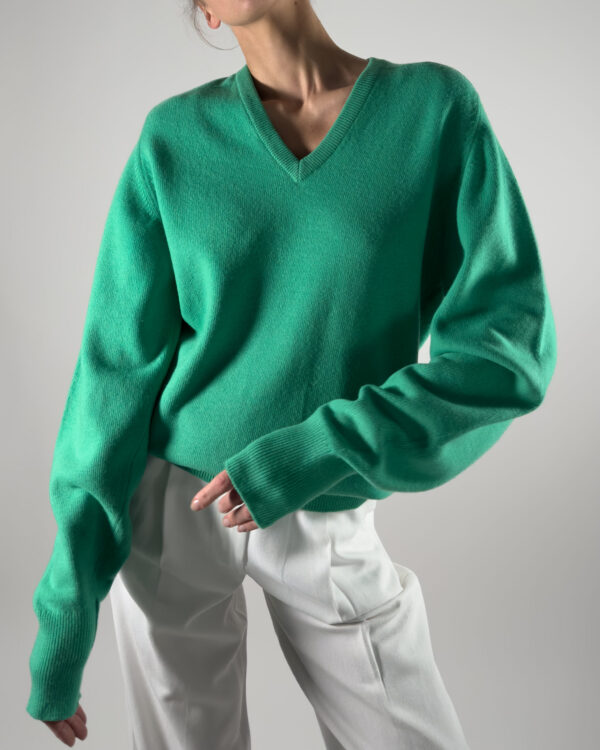 Luxurious Ballantyne sweater in vibrant green. Made from 100% super Geelong wool, renowned for its softness and warmth.
