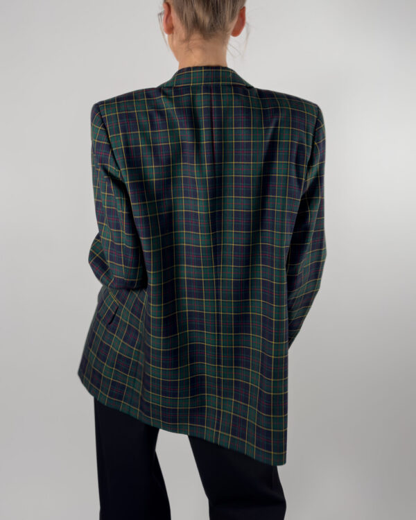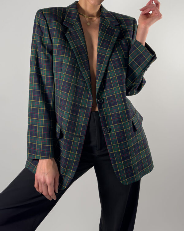 DAKS London Checkered Wool Blazer | Dark Blue & Green