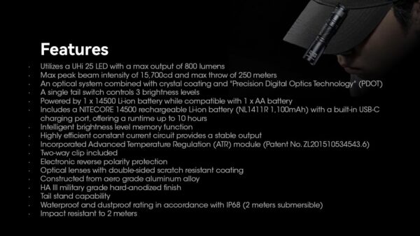 FLASHLIGHT MT SERIES/800 LUMENS MT1A PRO NITECORE