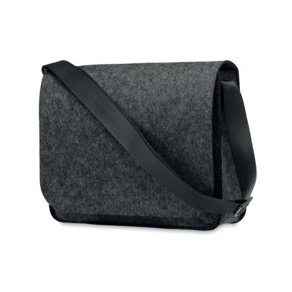 RPET felt messenger or laptop bag with hook and loop closure. Fits a 15 inch laptop.