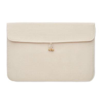 15 inch padded laptop pouch in 220 gr/m² cotton. Inner lining 120 gr/m². Bamboo button closure.