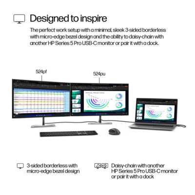 • The perfect work setup with a minimal, sleek 3-sided borderless design and the ability to daisy-chain[3] or pair with another HP Series 5 Pro monitor.[4]