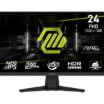 Experience immersive gaming with the MAG 244F gaming monitor. It features a 1920×1080 (FHD) panel, a 200Hz refresh rate, and a rapid 0.5ms (GtG, Min) response time. The monitor is HDR Ready, enhancing eye-catching details through adjustments in contrast and shadows. Designed for competitive FPS, first-person RPG/MMORPG, and flight/racing simulator genres, the MSI MAG 244F Gaming Monitor takes casual gaming to a new level, challenging players to see beyond the game.