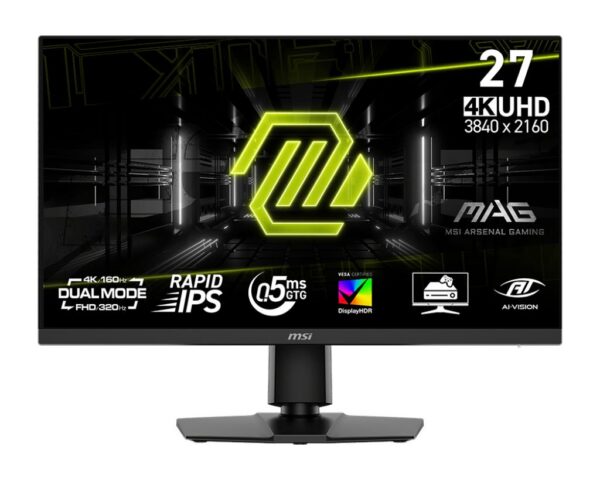 Experience immersive gaming with the MAG 272URDF E16 gaming monitor. Featuring Dual Mode with UHD 160Hz and FHD 320Hz, along with AI Navigator for an enhanced gaming experience, it delivers exceptional performance. Certified with VESA DisplayHDR 400, it refines contrast and shadows for stunning visual clarity. Designed for competitive FPS, first-person RPG/MMORPG, and flight/racing simulators, the MAG 272URDF E16 redefines casual gaming, pushing players to see beyond the game.
