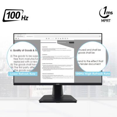 24.5-Inch Monitor PRO MP251 Series maximizes focus and saves space. EyesErgo technology nurtures well-being through reduced strain and ergonomic design. We are elevating visuals and productivity with seamless hardware and software integration and embracing 100Hz refresh rate for future work.