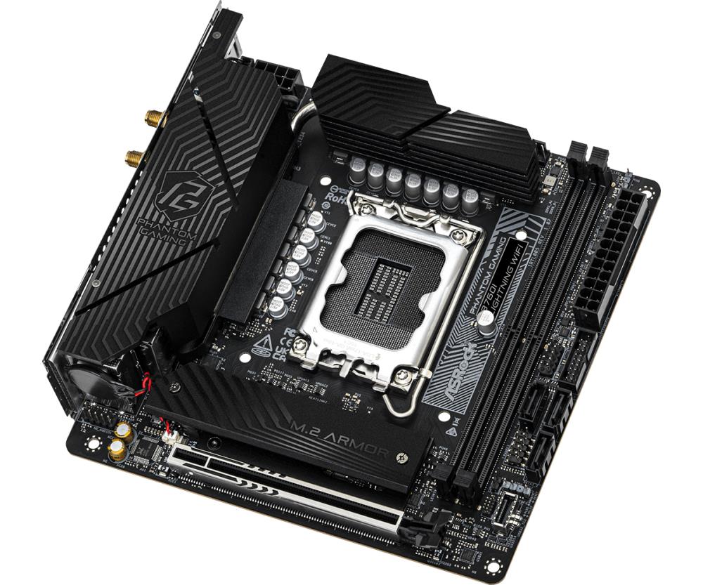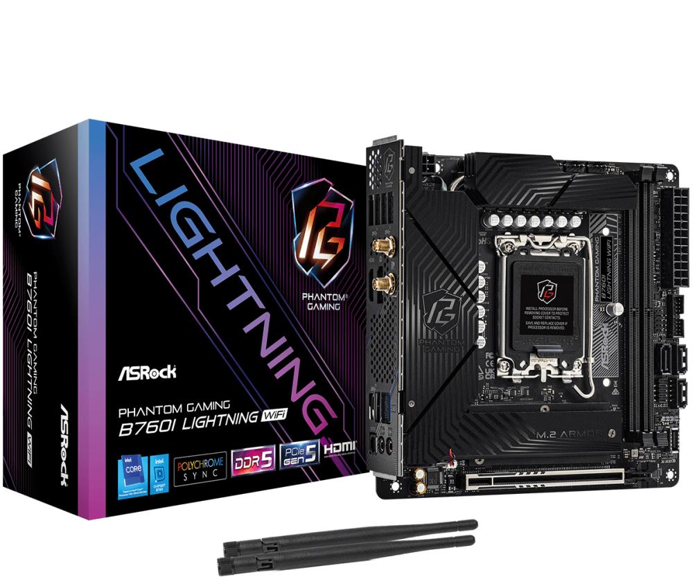 Mainboard|ASROCK|Intel B760 Express|LGA1700|Mini-ITX|Memory DDR5|Memory slots 2|1xPCI-Express 5.0 16x|3xM.2|1xHDMI|1xDisplayPort|5xUSB 3.2|1xUSB-C|1xOptical S/PDIF|1xRJ45|2xAudio port|B760ILIGHTNINGWIFI