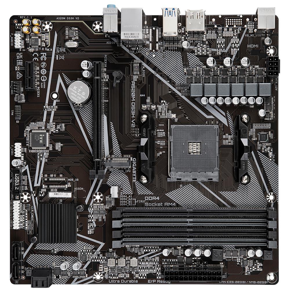 Mainboard|GIGABYTE|AMD A520|SAM4|Micro-ATX|Memory DDR4|Memory slots 4|1xPCI-Express 3.0 1x|1xPCI-Express 3.0 16x|1xM.2|1xHDMI|1xDisplayPort|2xUSB 2.0|4xUSB 3.2|1xPS/2|1xRJ45|3xAudio port|A520MDS3HV21.1
