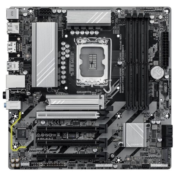 Mainboard|GIGABYTE|Intel B860 Express|LGA1851|Micro-ATX|Memory DDR5|Memory slots 4|4xPCI-Express 4.0 16x|1xPCI-Express 5.0 16x|2xM.2|1xHDMI|2xDisplayPort|1xAudio-In|1xAudio-Out|1xMicrophone|3xUSB 2.0|1xUSB-C|1xPS/2|1xRJ45|B860MDS3HWIFI6E1.0