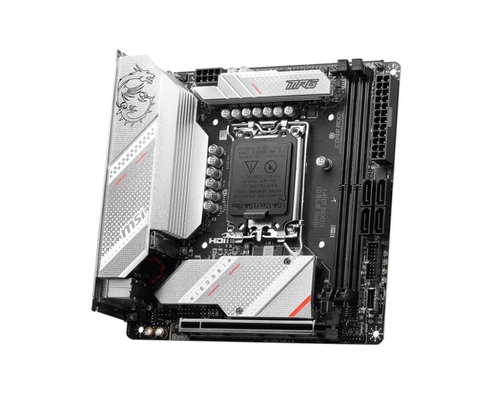 Mainboard|MSI|Intel B760 Express|LGA1700|Mini-ITX|Memory DDR5|Memory slots 2|1xPCI-Express 16x|2xM.2|1xHDMI|1xDisplayPort|2xUSB 2.0|5xUSB 3.2|1xUSB-C|1xRJ45|3xAudio port|MPGB760IEDGEWIFI