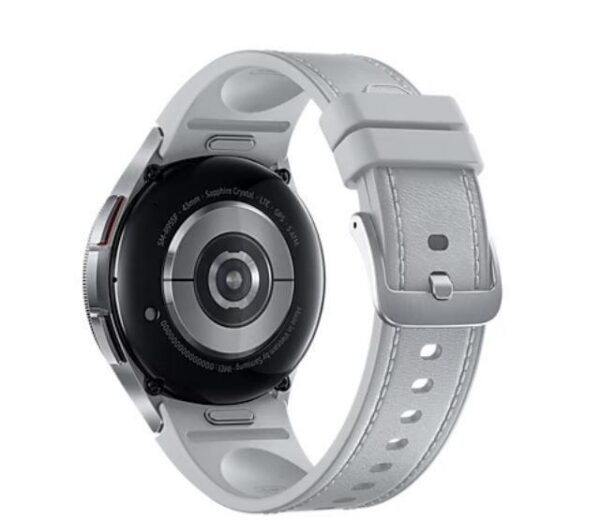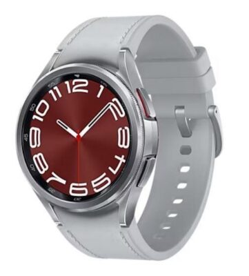 Galaxy Watch6 Classic | Screen 1.5″ | Display technology Super AMOLED | Resolution 480 x 480 | Wireless connections WLAN/Bluetooth/LTE/NFC | CPU Dual-core 1.4 GHz Cortex-A55 | Memory 16GB 2GB RAM | GPS | Colour Silver | Battery capacity 425 mAh | Dimensions 46.5 x 46.5 x 10.9 mm | Weight 0.059 kg