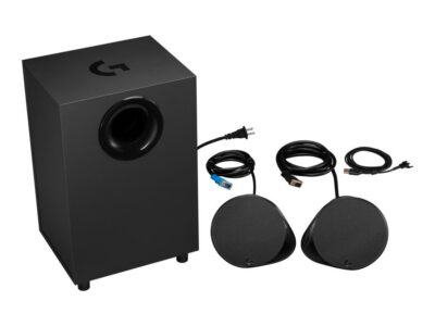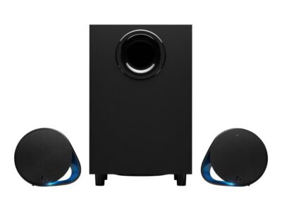 G560 | Colour Black | Speaker features Wireless | System profile 2.1 | P.M.P.O. 240 Watts | Frequency response 40Hz – 18 KHz | Headphones jack | Bluetooth | Included Accessories Two satellite speakersOne subwoofer with power cableUSB cableUser documentation | Dimensions Satellites 148 x 166 x 118 mm; Subwoofer 404 x 255 x 207 mm