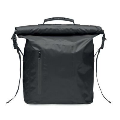 RPET 210D polyester waterproof rolltop backpack. Capacity: 30L.